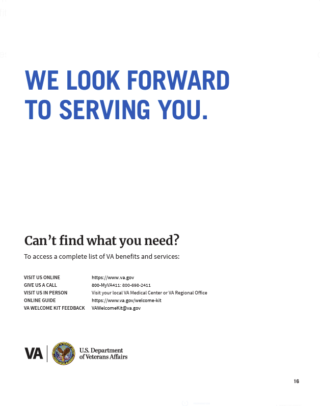 To see the entire document please go to www.va.gov/welcome-kit